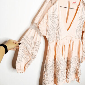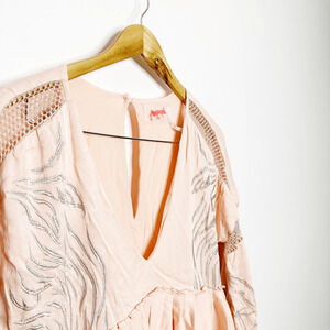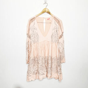 FREE PEOPLE Starlight Mini Dress Light pink embroidered long sleeve women's XS