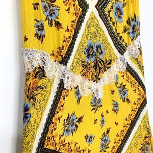 FREE PEOPLE Stevie Yellow Lace Trimmed Maxi Dress Sz XS