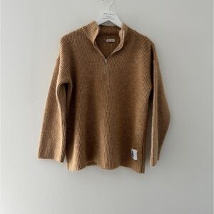 Features: Soft ribbed knit fabrication; top with drop-shoulder long-sleeves, quarter-zip closure with a collared neckline;