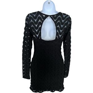 FREE PEOPLE Stretch Knit Long Sleeve Mini Dress Key Hole Back Size XS.
