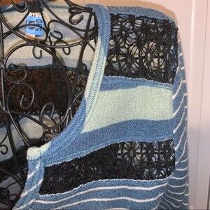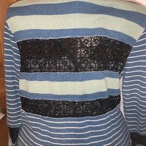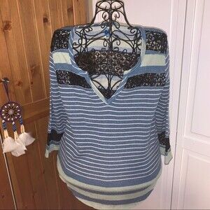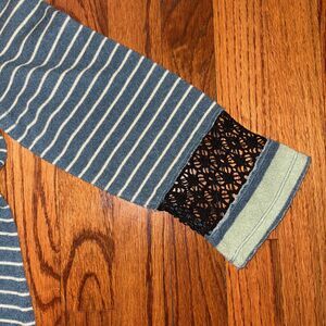 FREE PEOPLE Striped Crochet Accent Long Sleeve Top Size M
