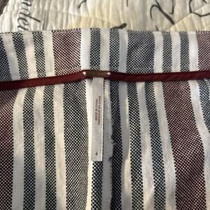 These Free People cropped trousers are a stylish and versatile addition to any wardrobe. Size 4. Made from a comfortable and breathable linen blend, these cropped pants feature a flattering flat front and mid-rise fit. With a trendy striped pattern and multicolor design, they are perfect for various occasions.The boho and nautical themes make them a great choice for the summer, fall, and spring seasons.