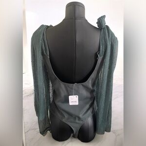 FREE PEOPLE Stylish Green Bodysuit with Sheer Sleeves NWT