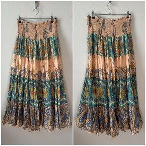 • Features: Smocked waistband for pull-on ease, contrast paisley and floral prints, lightweight cotton fabrication, can be transformed from a maxi skirt to midi dress with ease