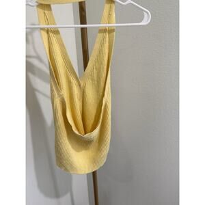 Preowned Free People FP Beach Yellow Basketweave Halter Sweater M/L Boho Knit Top