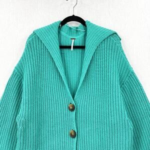 FREE PEOPLE Swim Too Deep Oversized Cardigan Womens S Turquoise Collared Button