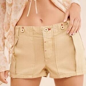 FREE PEOPLE Sz 6 All Yours Micro Mini Shorts Khaki Neutral Brown Utility Cargo