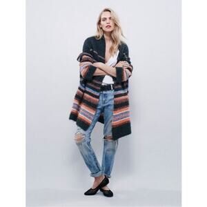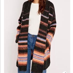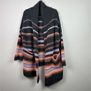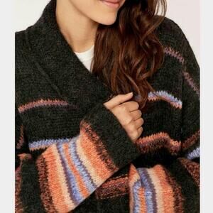 FREE PEOPLE Sz XS Alpaca Stripe Cardigan Charcoal Combo Pockets Orange Striped