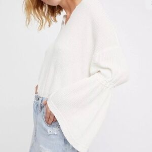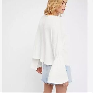FREE PEOPLE SzS WE THE FREE DAHLIA V-NECK BELL-SLEEVE THERMAL TOP IVORY/White. Has tow extremely faint tiny spots but can’t really see them and will most likely come out. Haven’t washed this item because it is new without tags. Spots from storing. Ships fast!