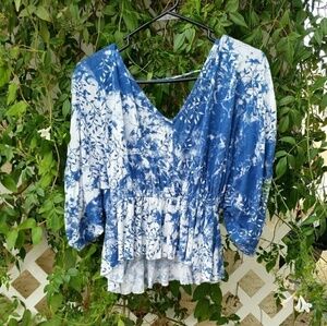 Free People Abracadabra Cold Shoulder Top in blue and white in size small. Barely worn . It is soo cute though and features open shoulders with ties. The back is very open with a deep v as well as the front. M