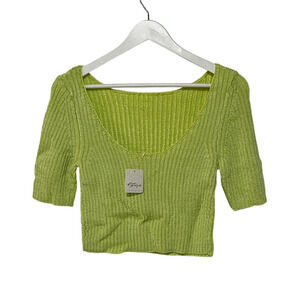 FREE PEOPLE TOP WOMENS MEDIUM SAN LUCAS STRETCH KNIT CROP PULLOVER SWEATER GREEN