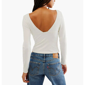 FREE PEOPLE TOP WOMENS SIZE LARGE DUO CORSET LONG SLEEVE STRETCH TEE IVORY