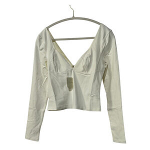 FREE PEOPLE TOP WOMENS SIZE MEDIUM DUO CORSET LONG SLEEVE STRETCH TEE IVORY