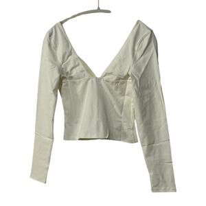 FREE PEOPLE TOP WOMENS SIZE SMALL DUO CORSET LONG SLEEVE STRETCH TEE IVORY