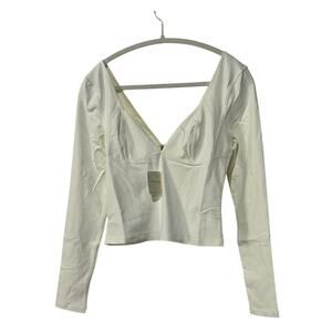 FREE PEOPLE TOP WOMENS SIZE SMALL DUO CORSET LONG SLEEVE STRETCH TEE IVORY