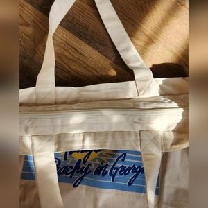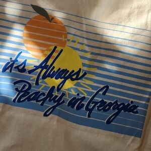 "It's Always Peachy in Georgia" zippered tote, 2 side pockets and zippered pouch on inside, tiny mark as shown in pic.