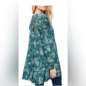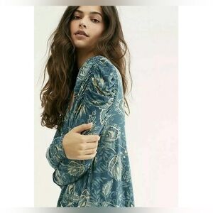 FREE PEOPLE TUNIC DRESS HELLO LOVER TOP DUSTY INDIGO COMBO GREEN NEW EITH TAGS M