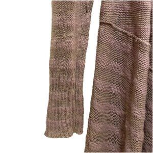 FREE PEOPLE Taupe Shadow Stripe Knit Boho Duster Open Cardigan Sz S