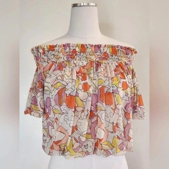 || FREE PEOPLE || Techni Color bubble top, floral, crop, off shoulder