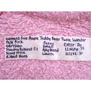 FREE PEOPLE Teddy Bear Tunic Sweater Womens Size S Oversized Pink Fuzzy Relaxed