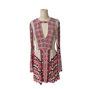 FREE PEOPLE Tegan Border Printed Midi Dress in Ivory Sz 6