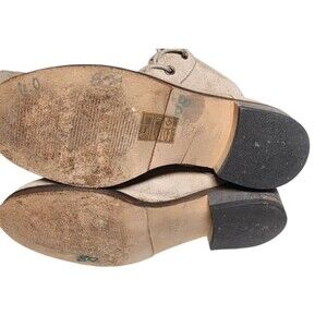 The Free People Tennessee Over Knee Leather Boots in size EU 36 are a stylish and versatile addition to any woman's wardrobe. These boho-inspired boots feature a round toe, lace-up closure, and low block heel for comfort and practicality. Made from high-quality leather with a suede lining, these boots are perfect for casual outings, parties, or even traveling. The beige color and solid pattern give them a timeless appeal, while the over-the-knee shaft style adds a trendy touch. Ideal for the winter, fall, or spring seasons, these boots are sure to make a statement whenever you wear them. Marker on sole, discoloration left inner boot and top of boot. Both boots state EU 36 on sole. They measure 10" from heel to toe. Inner flap on one boot has '37', and the other has '38'. I wear a 7.5, and they fit my foot, although a bit snug. Confusing much? As you can see from pics, they are both the same length from heel to toe.