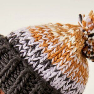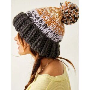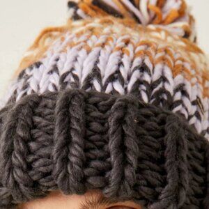 Free People A cold-weather staple, this chunky knit beanie comes complete with an oversized pom and fun striped print.