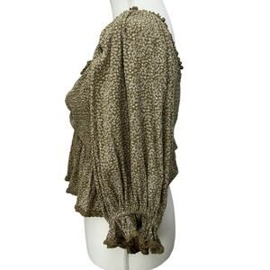 FREE PEOPLE Top Womens M Green Cropped Peasant Prairie Boho Festival