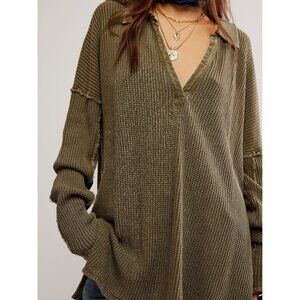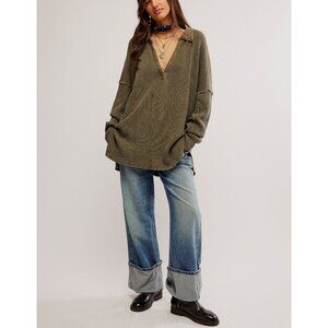🆕 FREE PEOPLE Travis Polo / Military Olive sz M ⭕️FINAL PRICE⭕️