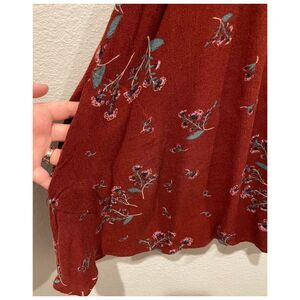FREE PEOPLE Tree Swing Tunic Burgundy Floral Blouse. Size XS