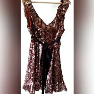 Free People Womens Sequin Siren Mini Dress Ruffle Sizes 10, 12