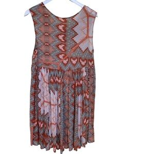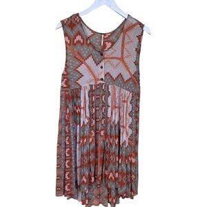 FREE PEOPLE Tunic Dress XS Boho Tan Rust Aztec Print