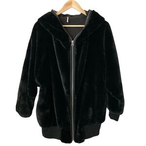 FREE PEOPLE Turn Up Hooded Faux Mink Fur Oversized Teddy Bomber Jacket Black