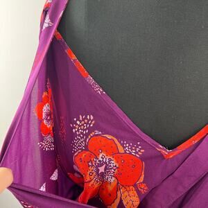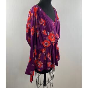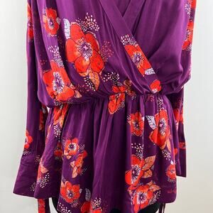 FREE PEOPLE Tuscan Dreams Floral Printed Tunic Top Mini Dress Plum Purple S SM