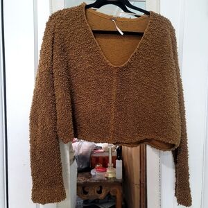 FREE PEOPLE V Neck Oversized cropped popcorn pullover size small