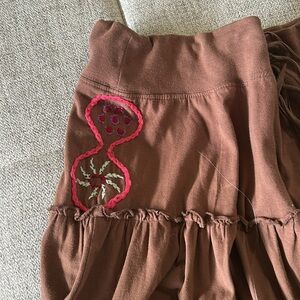 FREE PEOPLE VINTAGE FLOWER POWER BOHO EMBROIDERED BROWN SKIRT SIZE L