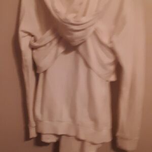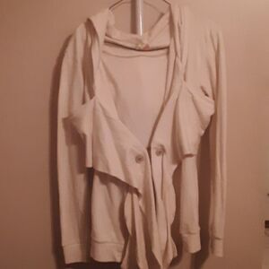 FREE PEOPLE VINTAGE OPEN FRONT CREAM HOODED SWEATSHIRT JACKET MEDIUM