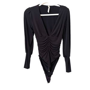 FREE PEOPLE V-Neck Cinched Bodysuit Black Sz Small