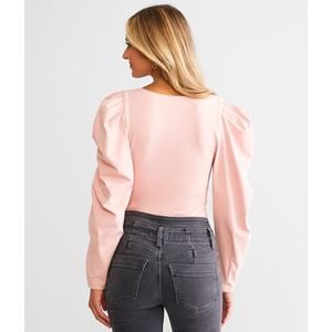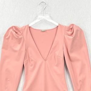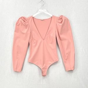 FREE PEOPLE Va Va Voop Long Sleeve Body Suit Womens XS Heart Haze Pink Puff NEW