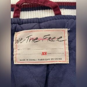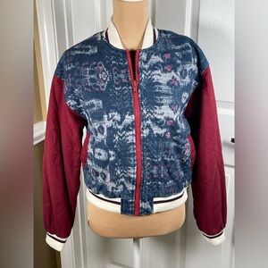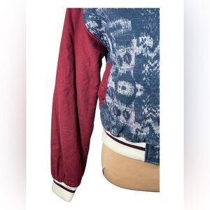 FREE PEOPLE Varsity of Dreams Bomber Jacket Denim Maroon XS