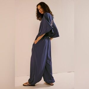 FREE PEOPLE “ Venus One Piece” women’s butterfly sleeve jumpsuit in blue
