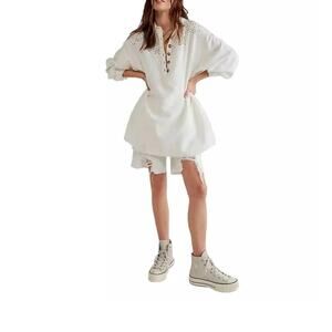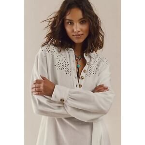 FREE PEOPLE Vera Shirtdress Eyelet Embroidered Linen Blend Ivory White