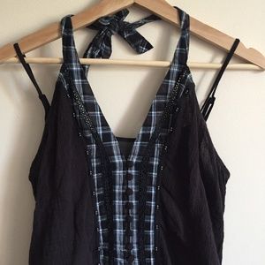 FREE PEOPLE Vintage Flannel Halter Tank Top