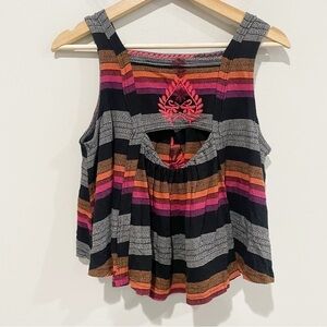 FREE PEOPLE Vintage Stripe Swing Tank Boho Hippie Embroidered Folklore Size XS