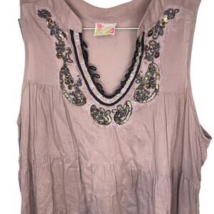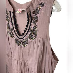 FREE PEOPLE Vintage Tiered Mauve Mini Dress Embroidered Sequins Size Small EUC