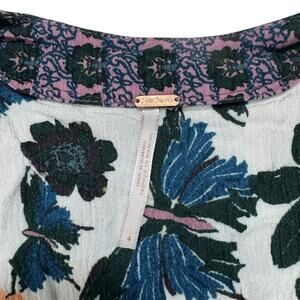 FREE PEOPLE Violet Hill Gauze Mini Dress / Tunic in Blue Green White Floral. Size 4 Women’s. 100% rayon with a crinkle gauze texture. Deep v-neck. Excellent condition — no rips, stains, or holes.