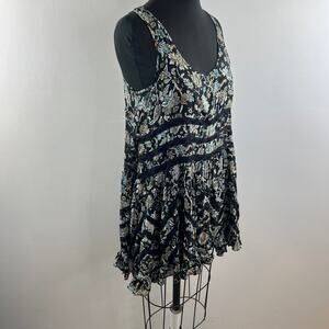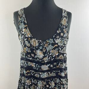 Free People Voile and Lace Trapeze Slip Dress Black Sleeveless Scoop Neck Size S
