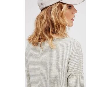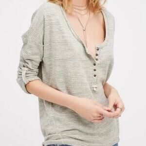 FREE PEOPLE WE THE FREE BEACH HAVEN OLIVE GREEN BEIGE STRIPED HENLEY TEE TOP