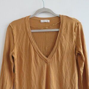FREE PEOPLE WE THE FREE Moon Dance Long Sleeve V-Neck Top in Toasted Honey XS