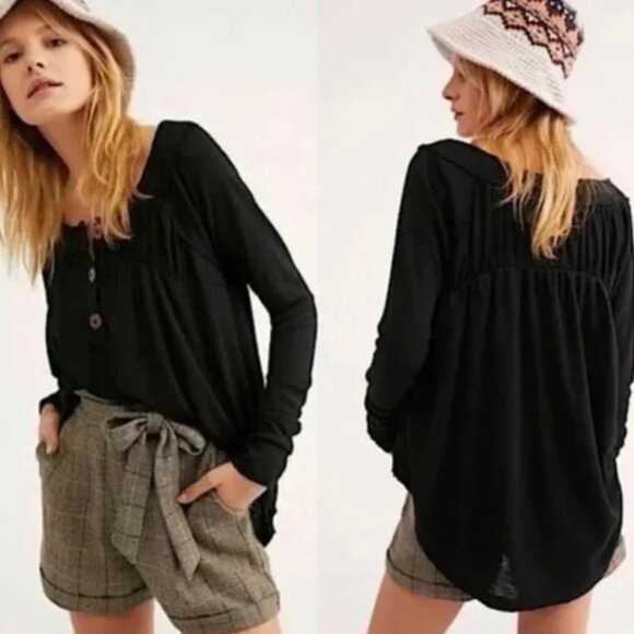 FREE PEOPLE WE THE FREE Must Have Henley Top in Black - Women's Size Small